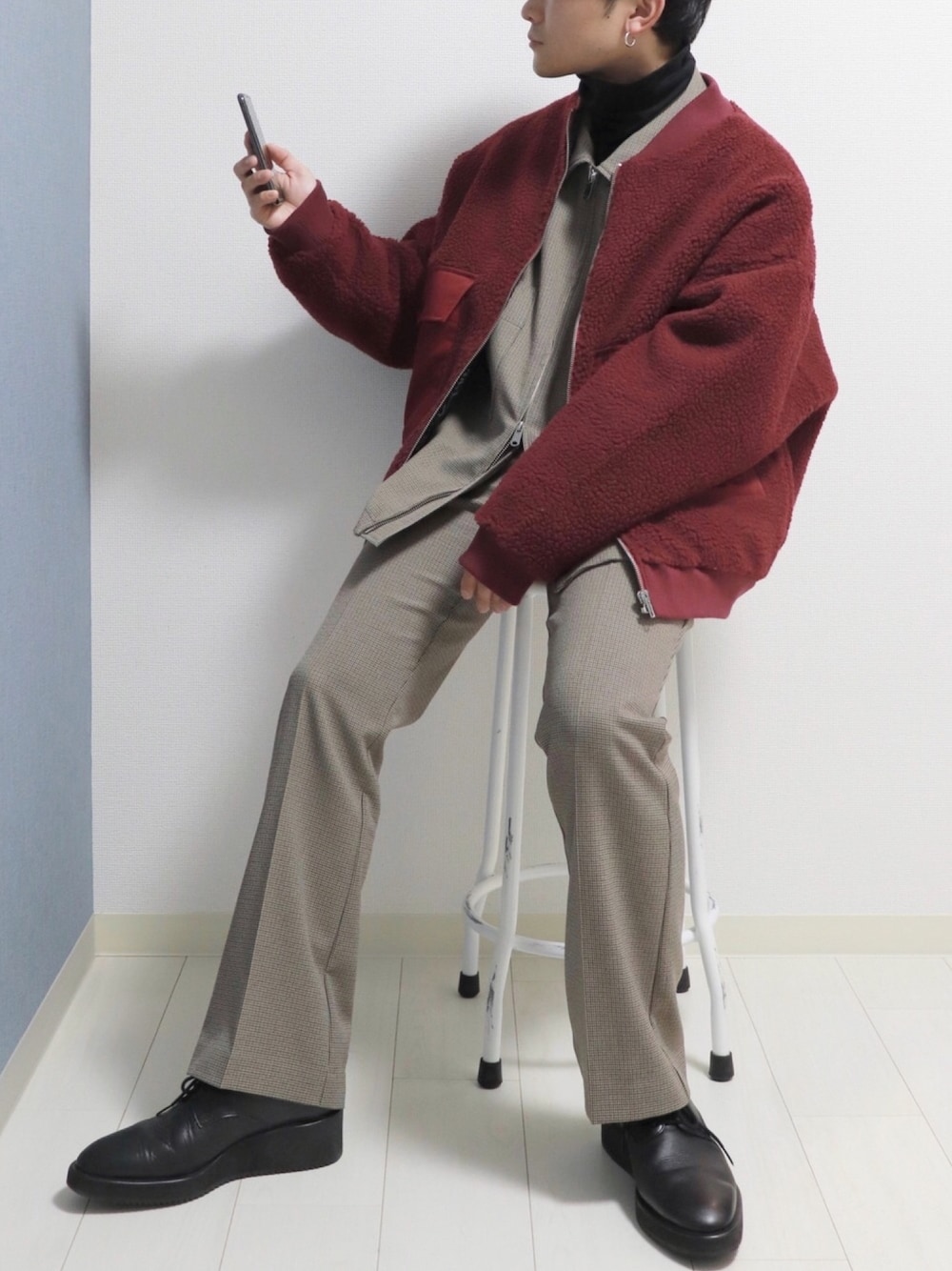 心のミリタリージャケット「メンズボアビッグシルエットミリタリーMA-1 ジャケット」を使ったコーディネート