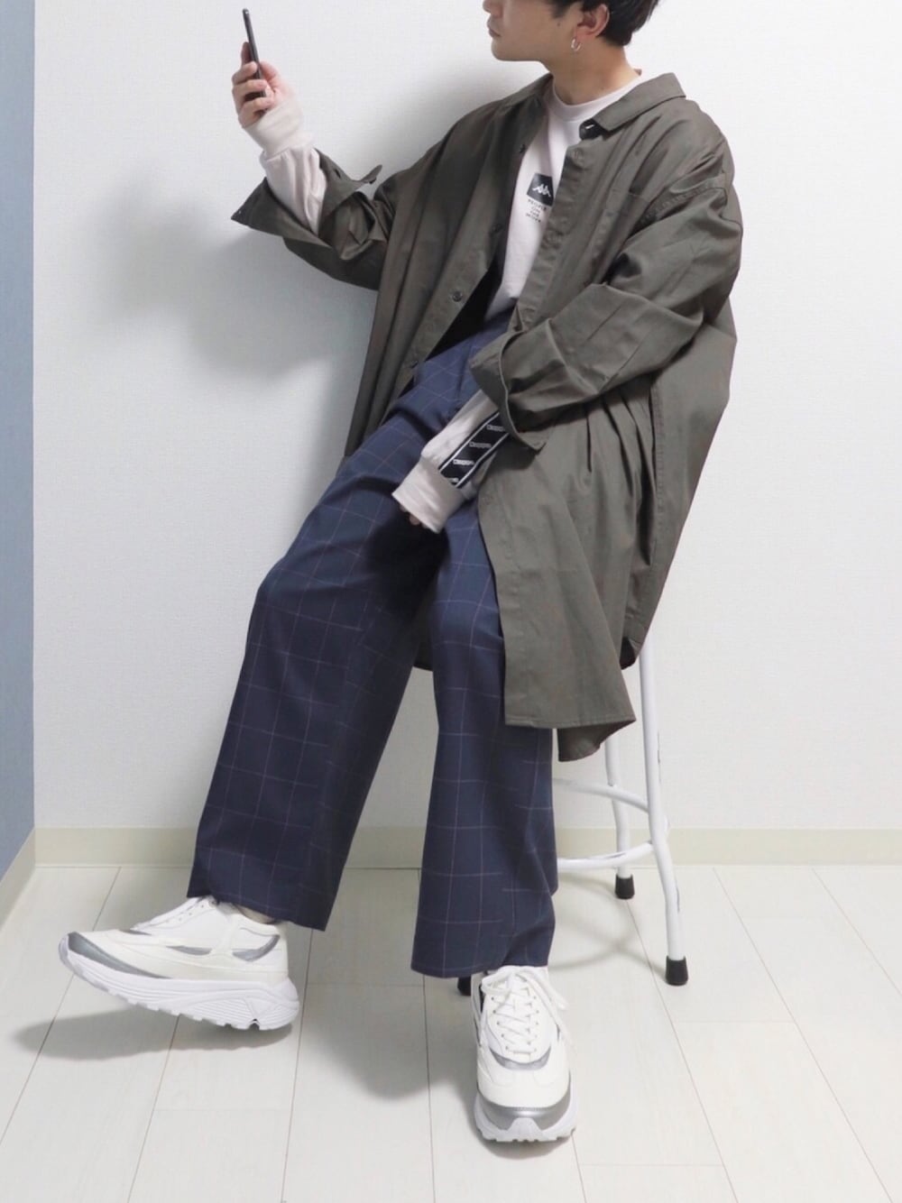 Instagram ▶︎ ____s_i_n____ 珍しくカーキとネイビー。 それを繋ぐベージュ。 この時期ロンTやロン丈シャツが活躍しますな。 サイドラインが入っているロンTは袖のレイヤードで遊べますな。 ワイドパンツと白スニーカーってほんと相性良いすな。