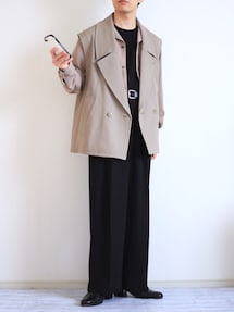 心のシャツ/ブラウス「ロングスリーブビッグシルエットストライプWポケットネオンカラーオーバーサイズシャツ」を使ったコーディネート