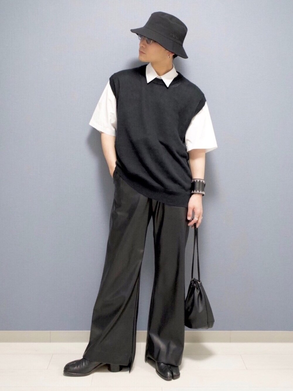 モノトーン ニットベスト フレアパンツ 最近好きなもの詰め合わせコーデ バランスも気に入ってます💁♂️ 自己満でもぜんぜん構わん Instagram ▶︎ ____s_i_n____