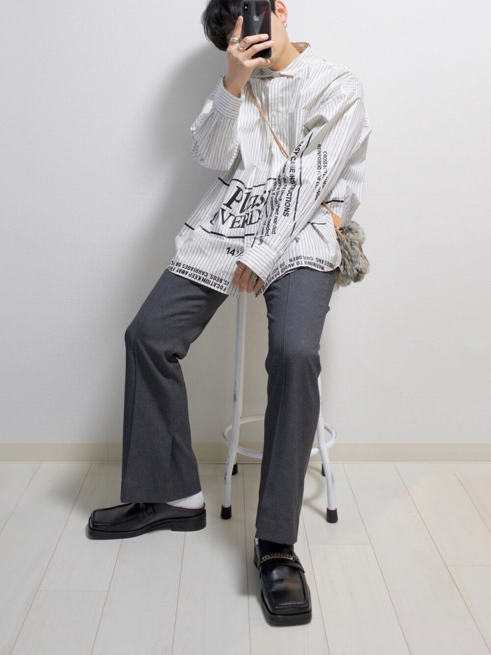 1分過ぎた最悪 投稿予約機能実装してくださいまじで😭 好きすぎるストライプシャツをグレースラックスで。 アクセントにファー小物 Instagram ▶︎ ____s_i_n____ インスタも見に来てね