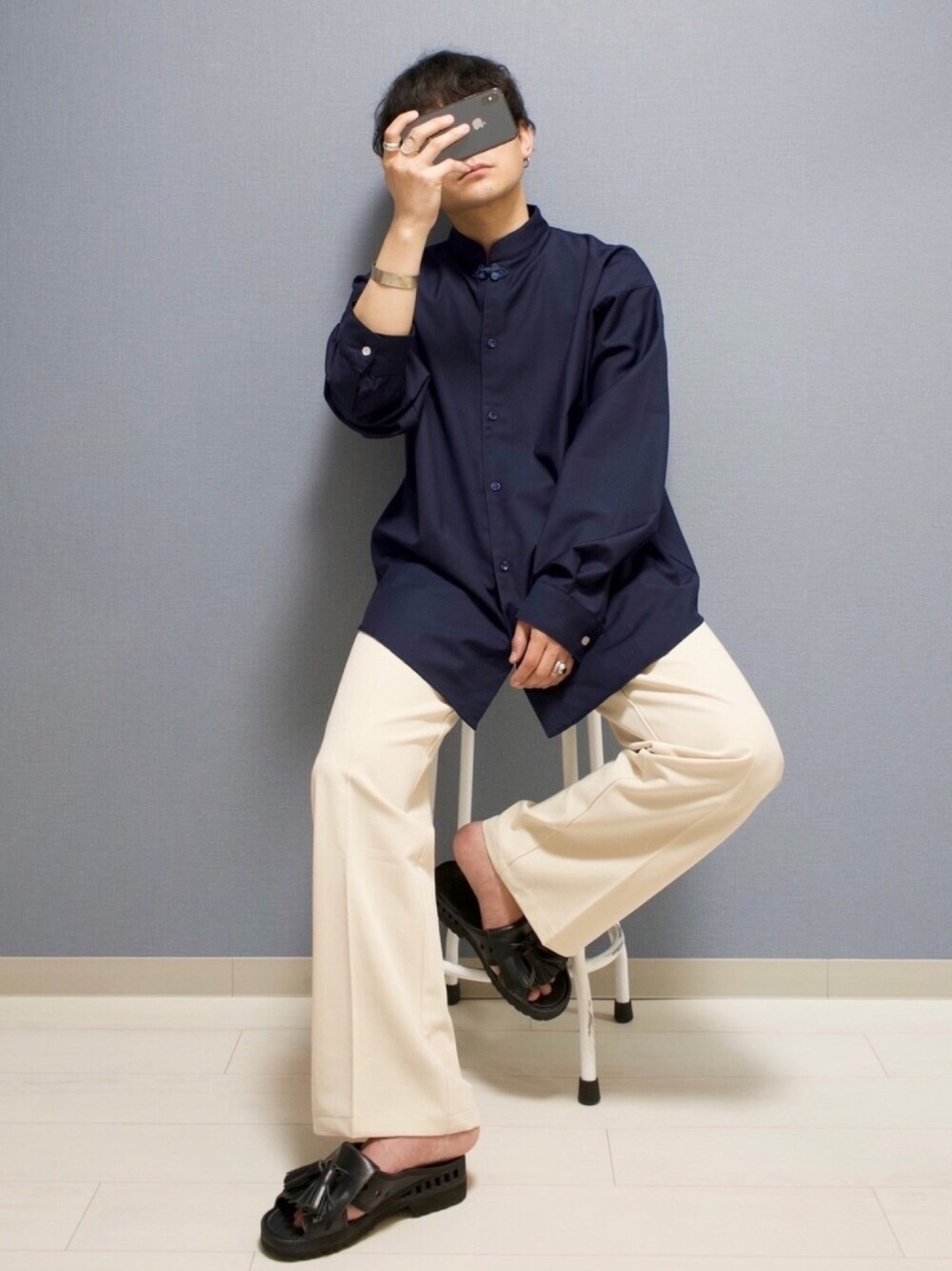 チャイナシャツよいです🙆♂️ ネイビーはホワイトとも相性が良い 何でもっと早くに気づかんかったんやろ… Instagram ▶︎ ____s_i_n____
