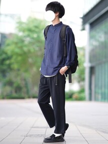 心のシャツ/ブラウス「【新色追加/ユニセックス】ファッションインフルエンサー てん - チャイナボタンスタンドカラーシャツ made in INTER FACTORY」を使ったコーディネート