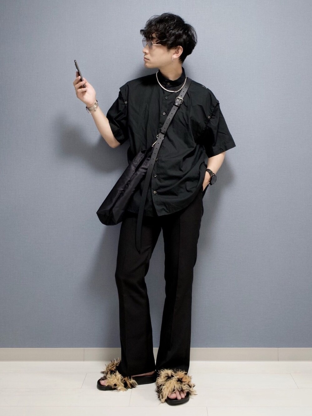 髪切っても天パだと切った感そんな出ない〜 真っ黒コーデあちぃけどついついやってまう サンダルがアクセント。 Instagram ▶︎ ____s_i_n____