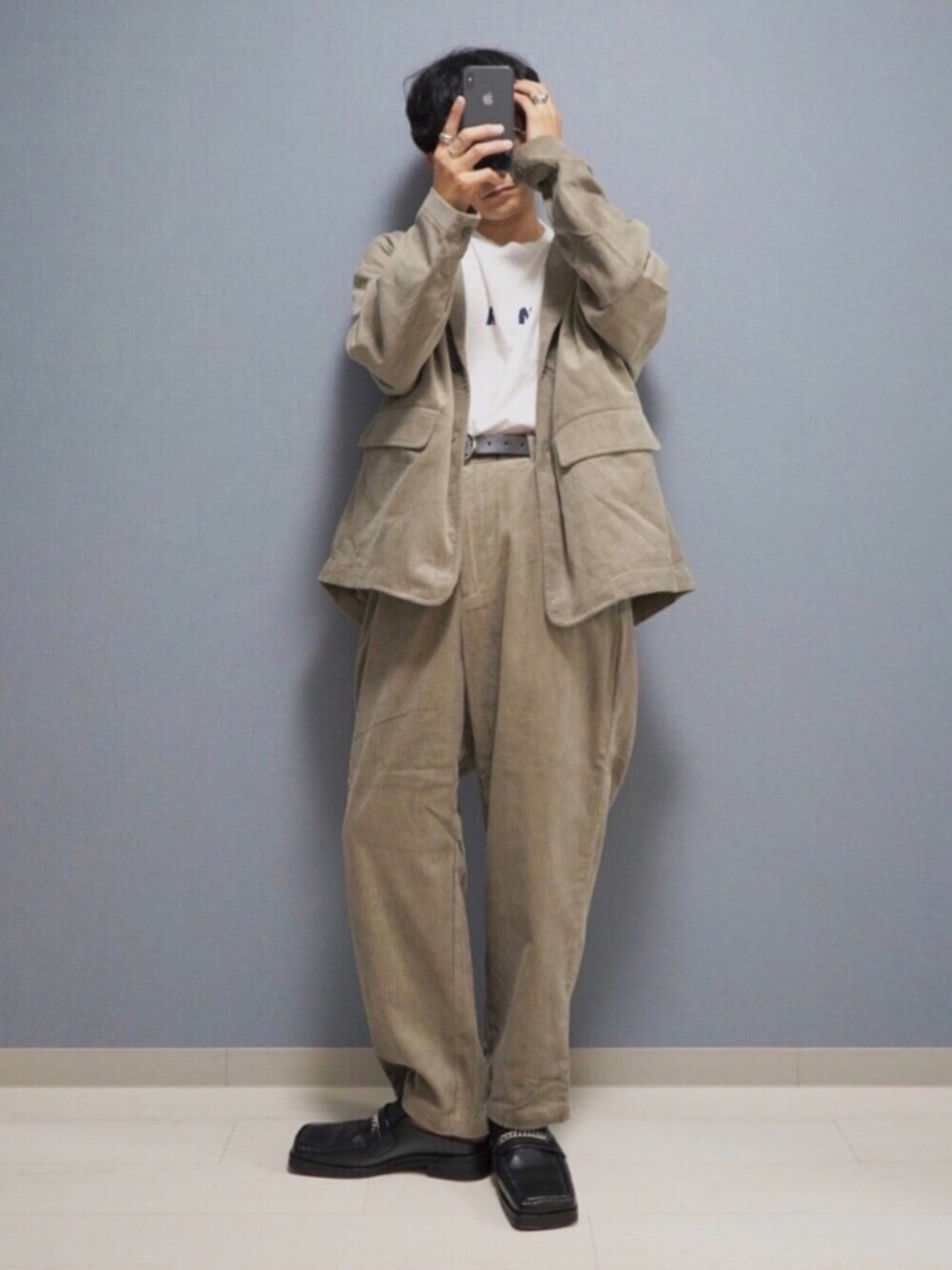 ゆるダボな コーデュロイセットアップ。 グレイッシュベージュ。 グレーでもベージュでもない中間な感じ。 グレーだと暗い印象だし、ベージュはセットアップになると目立つよね その中間色なので使いやすいこと間違いなし 【視聴者コメント】 う、うわぁああ、使いやすそ〜ぉぉ Instagram ▶︎ ____s_i_n____