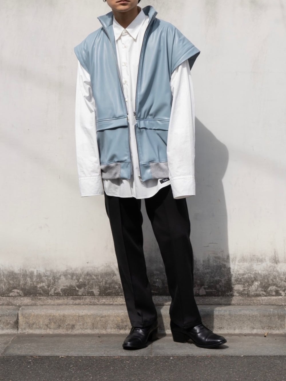 心のブルゾン「"Henkei" fake leather blouson(LIGHT BLUE)」を使ったコーディネート