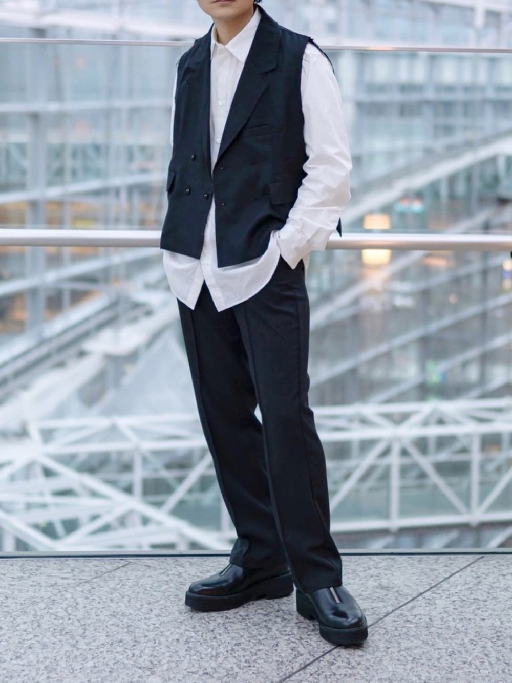 ■低身長に見せないコツ 斜めに立つ ■コーデのポイント的な Not conventional さんのスリーブレスジャケットを使ったコーデ。 ベスト フリーサイズ パンツ S ■宣伝 インスタ、Tiktokもぬるっと見に来てね Instagram ▶︎ ____s_i_n____ Tiktok ▶︎ ____s_i_n____