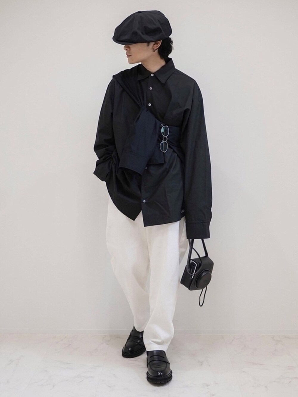 心のシャツ/ブラウス「"Henkei " Back-open regular collar shirt(Black)」を使ったコーディネート