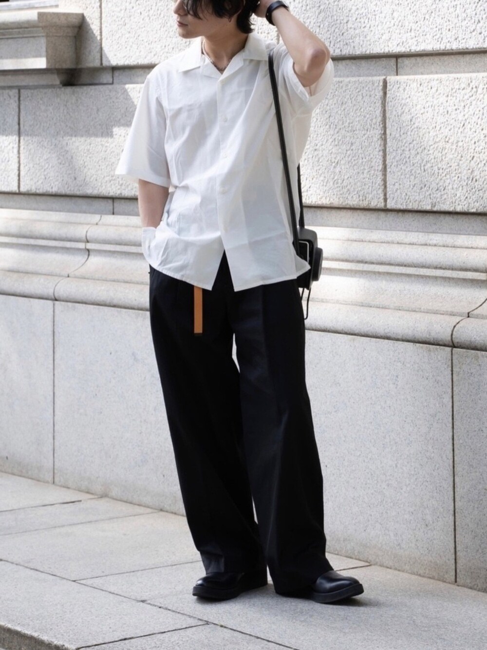 👍低身長に見せないコツ 片足に体重を乗せる 👍コーデのポイント的な 昼間暑い時はもう半袖着たくなる。 ユニクロの最強オープンカラーにワイドパンツ。 タックインしても良し。 インスタに動画載せてますのでみに来てね🙆♂️ オープンカラーシャツ M パンツ 1 ■宣伝 インスタ、Tiktokもぬるっと見に来てね Instagram ▶︎ ____s_i_n____ Tiktok ▶︎ ____s_i_n____