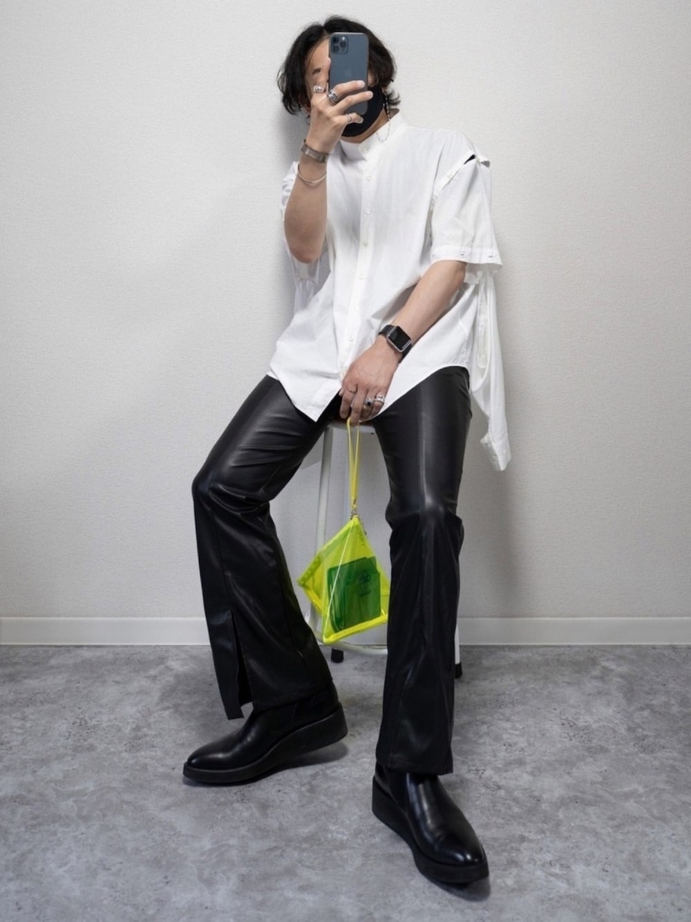 👍低身長に見せないコツ 座る 👍コーデのポイント的な 変形シャツとレザパン。 YohKi攻め。 変わった服が好きな人にはハマるだろうコーデ。WEAR受けは皆無だが。 シャツ 2 パンツ 1 ■宣伝 インスタ、Tiktokも。 Instagram ▶︎ ____s_i_n____ Tiktok ▶︎ ____s_i_n____