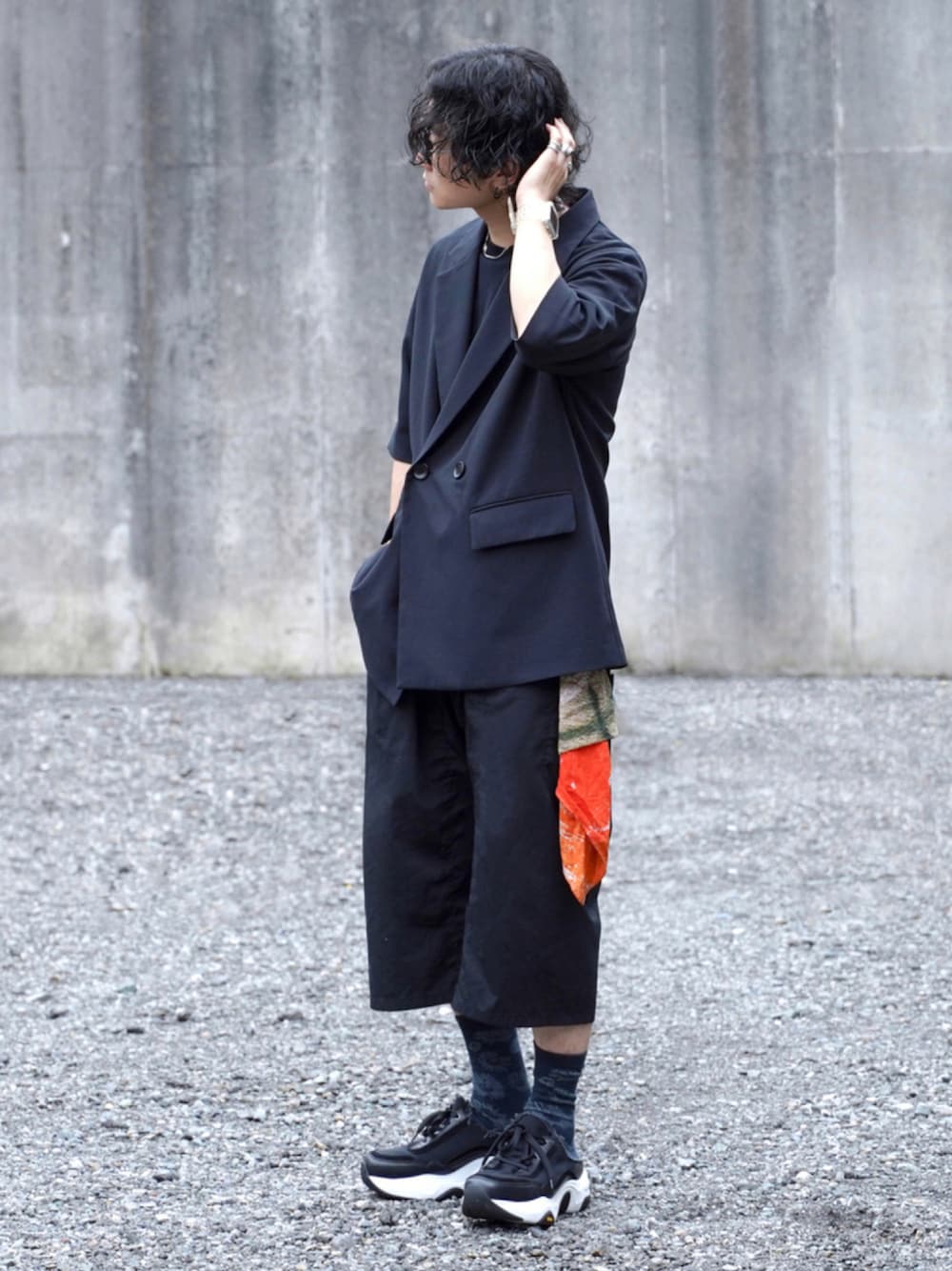 👍低身長に見せないコツ 横向く 👍コーデのポイント的な 半袖ジャケ探してたらGUにありました笑 ハーフパンツと合うね スカーフでアクセント。 ジャケット L ハーフパンツ 42 ■宣伝 インスタ、Tiktokも。 Instagram ▶︎ ____s_i_n____ Tiktok ▶︎ ____s_i_n____