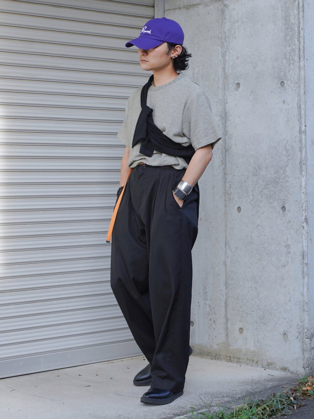 👍低身長に見せないコツ 斜めから撮る 👍コーデのポイント的な タオル地のTシャツ。 たすき掛けでアクセント。 ■宣伝 インスタ、Tiktokも。 Instagram ▶︎ ____s_i_n____ Tiktok ▶︎ ____s_i_n____