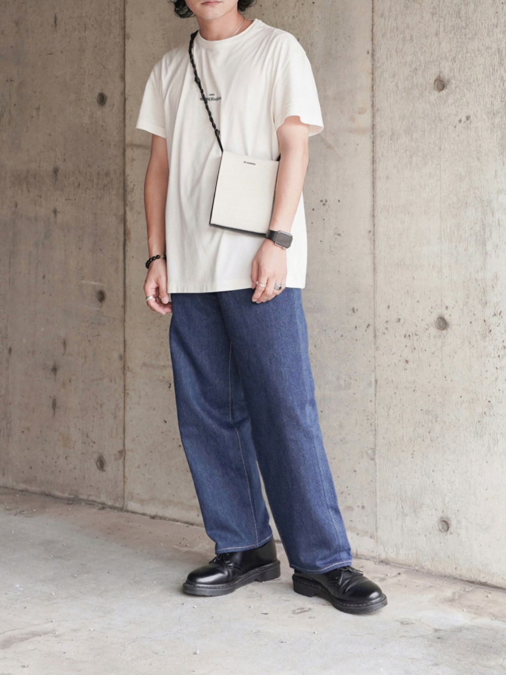 👍低身長に見せないコツ 斜めから撮る 👍コーデのポイント的な デニムにTシャツ。 デニムはlevi’s のLR CROPPED WIDE LEG KYANITE Size Tシャツ 48 パンツ 29 ■宣伝 インスタ、Tiktokも。 Instagram ▶︎ ____s_i_n____ Tiktok ▶︎ ____s_i_n____