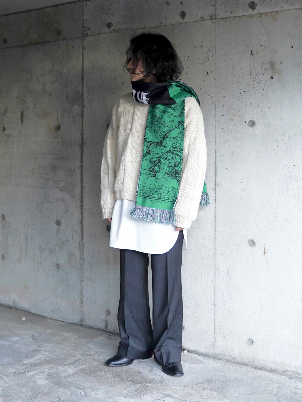 👱♂️今日の一言 色合わせがうまくできたかな🧐 💡低身長に見せないコツ 斜めから撮る 👕コーデのポイント的な ベージュニットにグリーンが映えるコーデ。 柄のマフラーの時はコーデはシンプルに。 ニット M シャツ M パンツ 1 📣宣伝 Instagram ▶︎ ____s_i_n____ Tiktok ▶︎ ____s_i_n____
