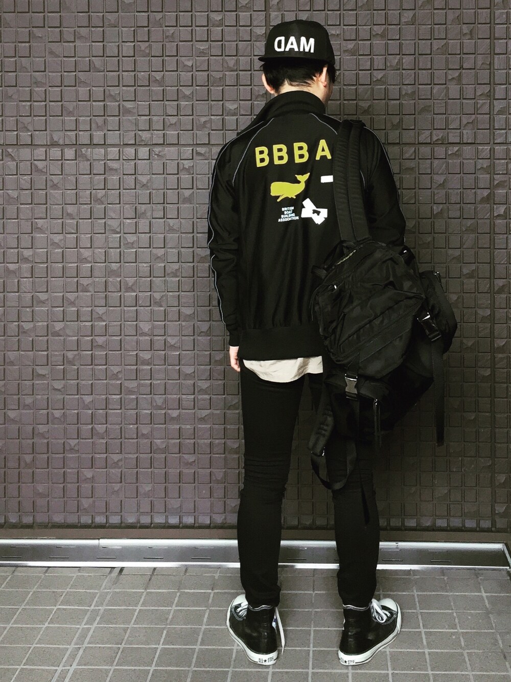 参加するイベントはいつも本気なShineですこんばんわ✋ BACK STYLE フェス 第2弾💣 お次はバックプリント推し。 バックプリントといえばストリート系かなと。 このジャージは10年ぐらいにポールスミスで買ったモノですが、全く解れもなくめちゃ丈夫でまだまだ着れます👍 キャップはオサレ師匠(勝手に)のOGIさんに憧れて買ったUNDER COVERの。何気にキャップコーデも初だったりする。 あとは、ぷりケツリクエストがあったので(笑)、小窓へ張っておきました。 この日のためにスクワットの回数を増やした事は言うまでもない。
