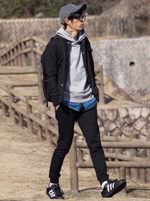ハロー2月🖖🏻 テーマ : ゆるダボ カラー : ブラウン × ネイビー ワンポイント : オープンカラーシャツをタックインでバランスを取る。足元はスポーツ感で遊びを。 ↑少し真面目に解説してみた☝️️ モンキータイムのカーディガンが可愛すぎて参りました。 春はこんな感じで外も歩けそうです。 女性にも男性にもオススメ。というか着て欲しい😇 タックインして、ベルトから上と下を2:1に配分するとバランス良く見えるらしい🙌 足が短か過ぎてそうならないんだけども😂😂😂