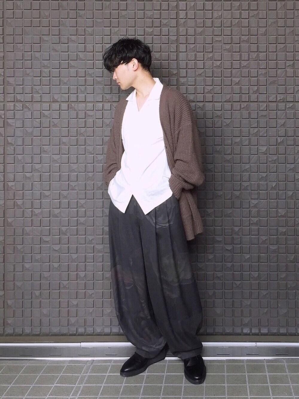 たくさんのお祝いコメントありがとうございました🙋 仕事柄なかなか更新出来なくて間が空いてしまうこともありますが、これからもマイペースに楽しんでやっていきますのでよろしくお願いします☺️🖖🏻 さてコーデのポイントですが、 ◆薔薇柄ワイドパンツでモード感。 ◆解禁シャツで悪っぽく。チンピラ感。 ◆アースカラーで統一感。 ワタクシがLAD MUSICIANフリークであることは既に周知の事実かと思いますが、マジでこのワイドパンツ、最高。 膝下にボリュームが出るニッカポッカ的なシルエットなので、脚長効果(これでも)。 柄もさりげない薔薇柄で、美しい。 悪っぽくいきたかったので、タックインはあえてせずルーズさを出しました。 全体的にゆるくなりがちなので、アースカラーで統一感を出しました。 パンツにタックが入ってるためか、バランスはいい感じに取れたかなと思ってます☺️ インスタ ▶︎shine.jf