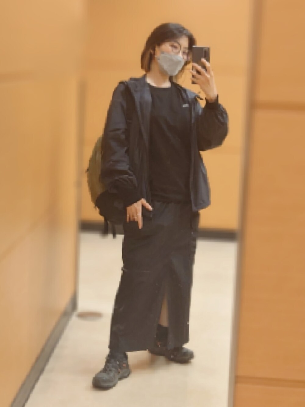上下シャカシャカ素材だった日 黒は落ち着きます
