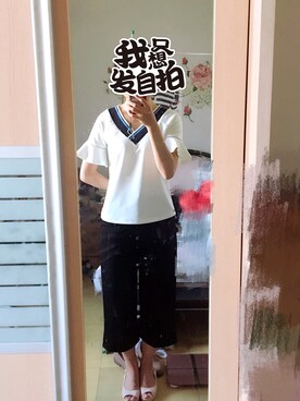 「百丽のアイテム(Tシャツ/カットソー、ホワイト系)」を使った、zmy赵梦瑶さん(レディース)の春コーディネート