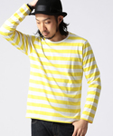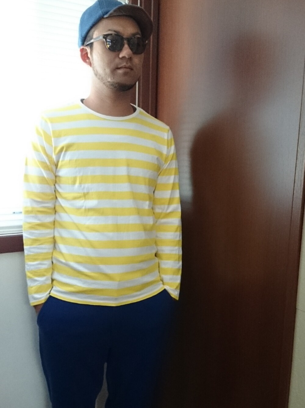 イエロー系のTシャツ/カットソーを着用したメンズの春コーディネートの1枚目の写真
