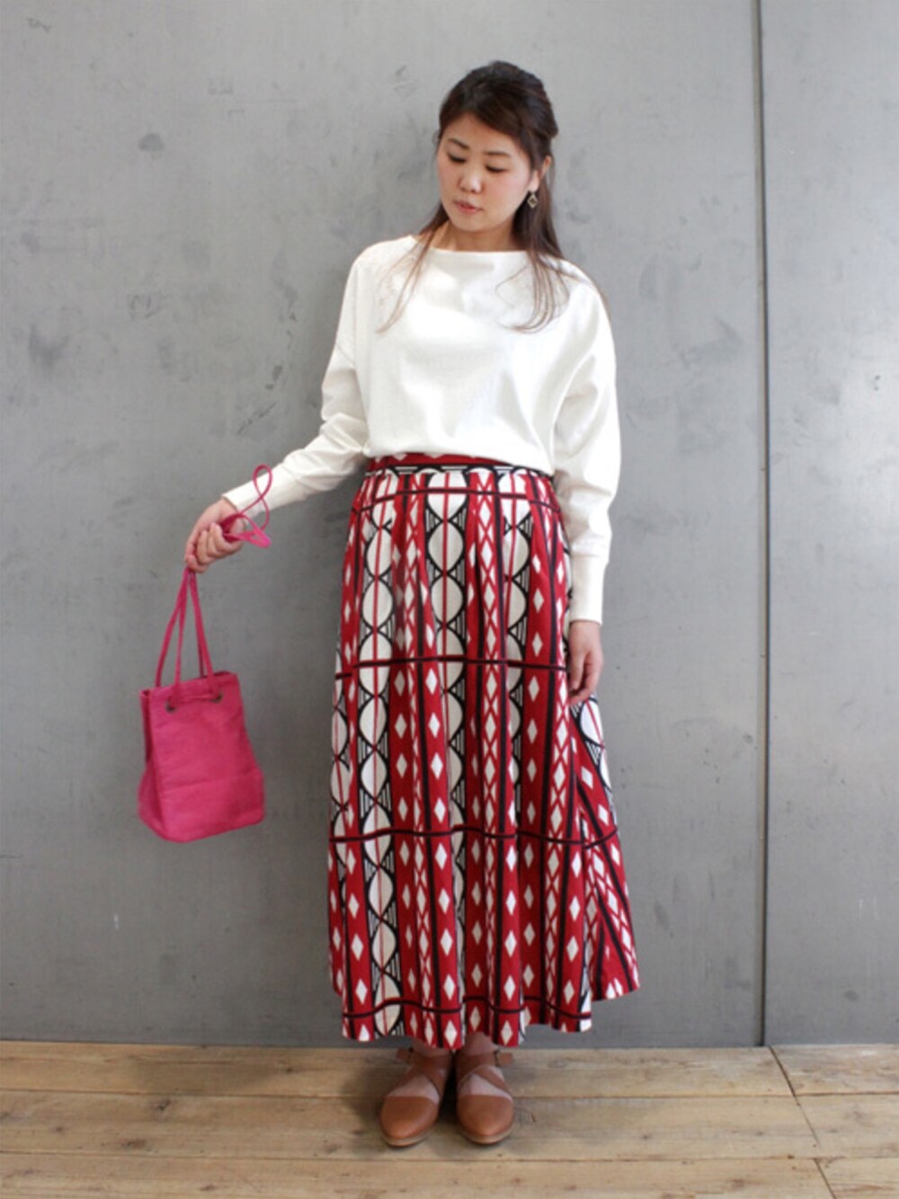 サマーセールスタート お気に入りのオリジナル柄スカートはインパクト抜群◎ 夏コーデには赤がおススメです!