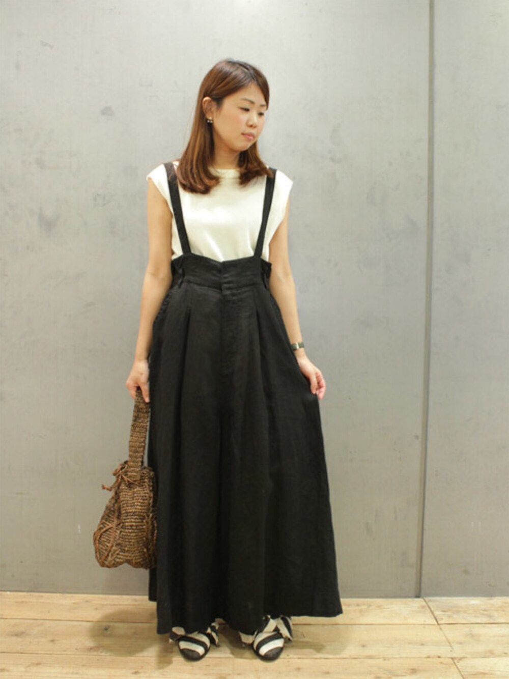 人気のサスペンダーパンツ! タンクトップやTシャツと合わせ、カジュアルに着こなすコーデがお気に入り◎