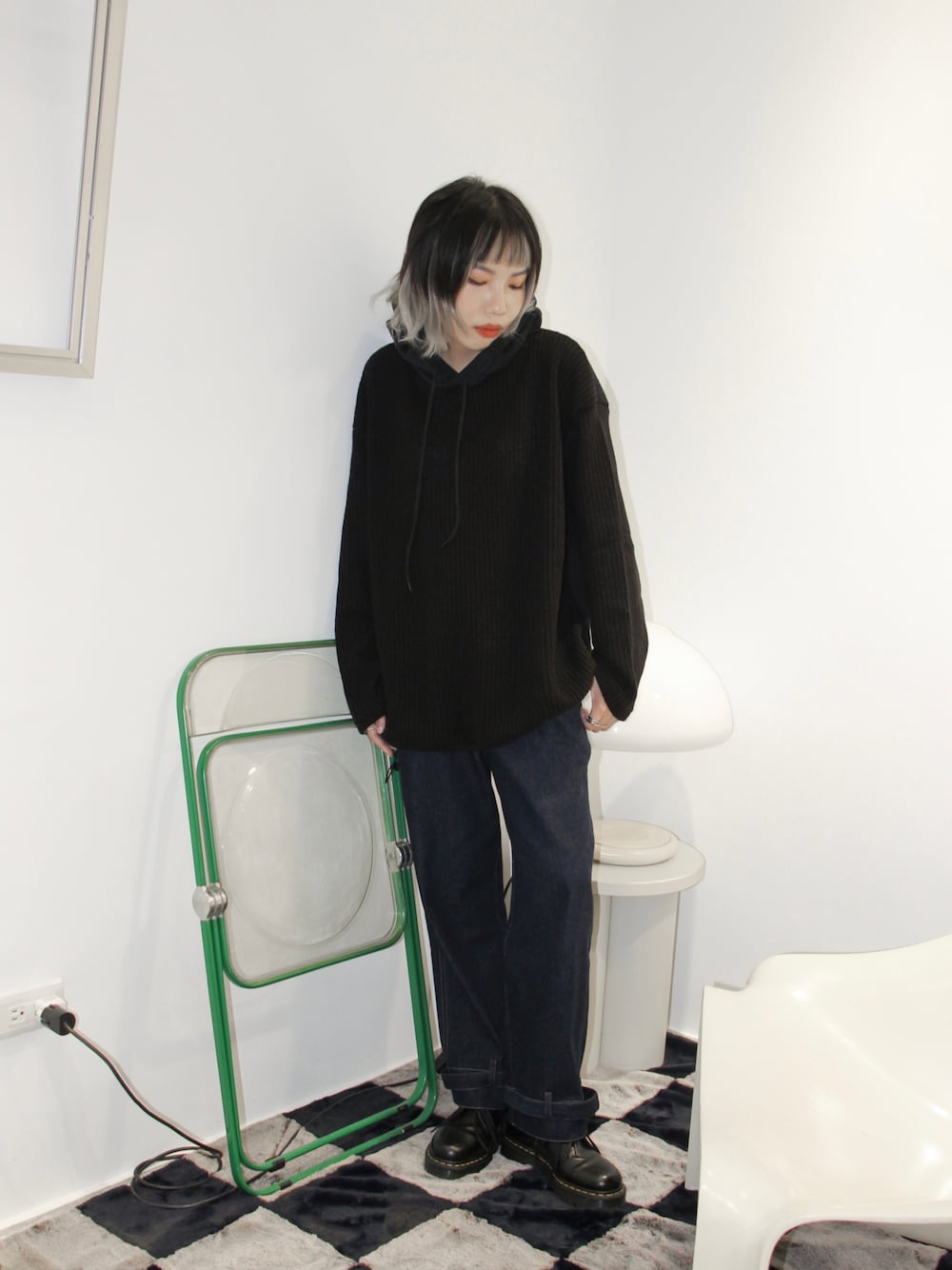 ブルー系のデニムパンツを着用したレディースの冬コーディネートの1枚目の写真