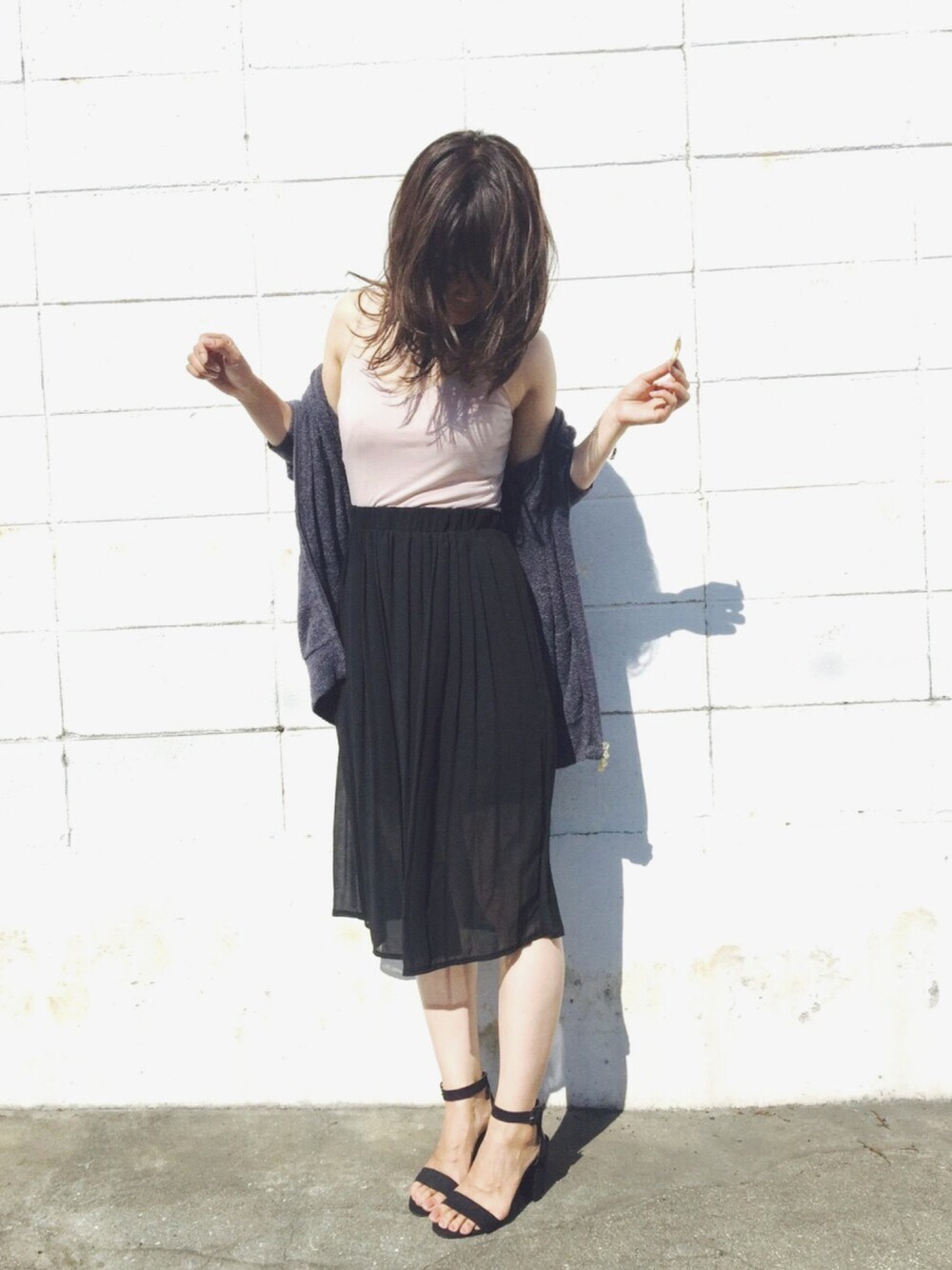 zonnuのスカート「https://www.amazon.co.jp/(キャロウ)CALLOW-きれいめ-ゆるふわプリーツ-カジュアル-オールシーズン/dp/B01HQAX2YM」を使ったコーディネート