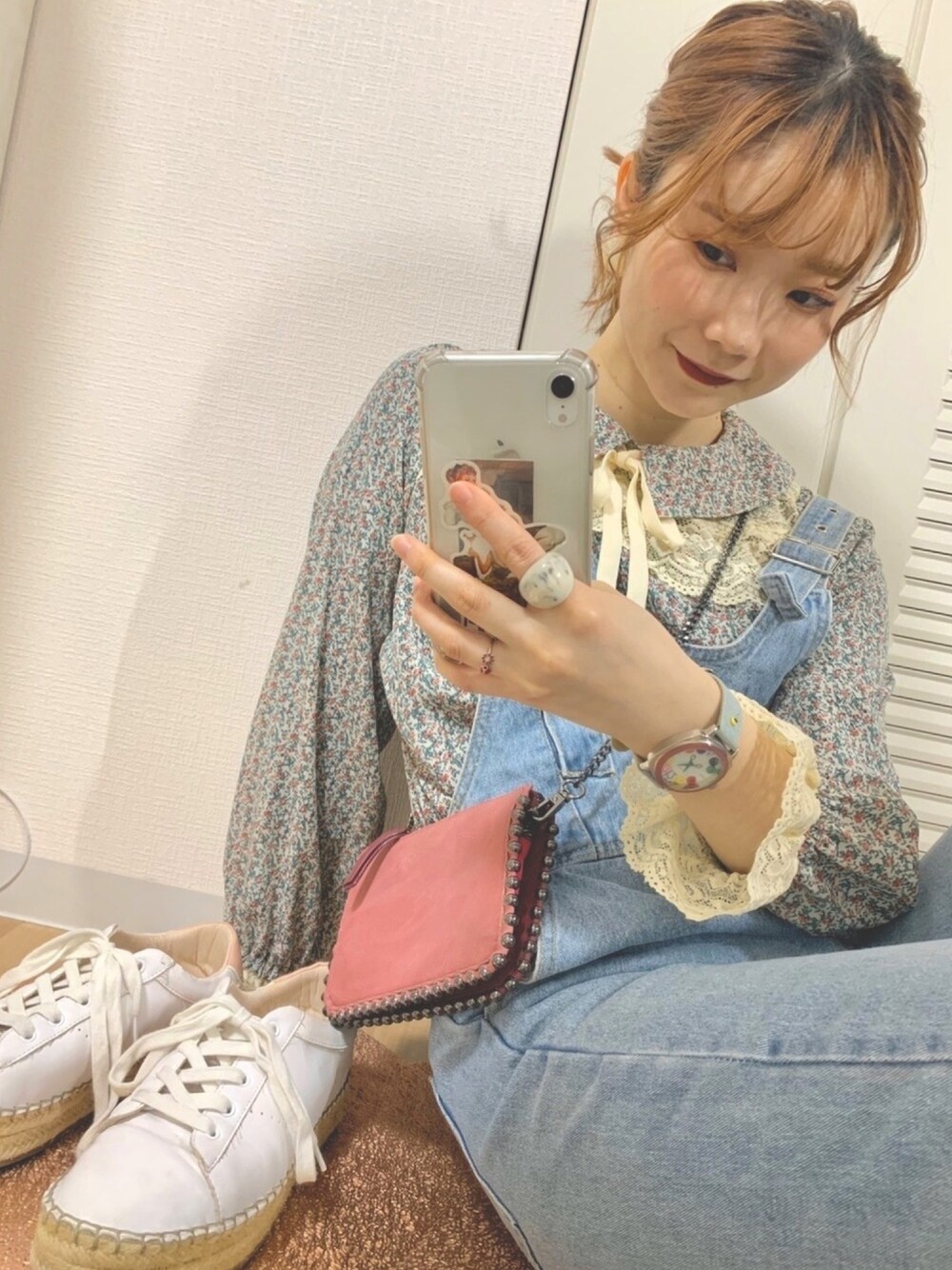 休日のゆったりコーデ💐 ・ ブラウスのカフスがとっても可愛いです🐩💓 ピンクを差し色にしてより春らしさupです🌷