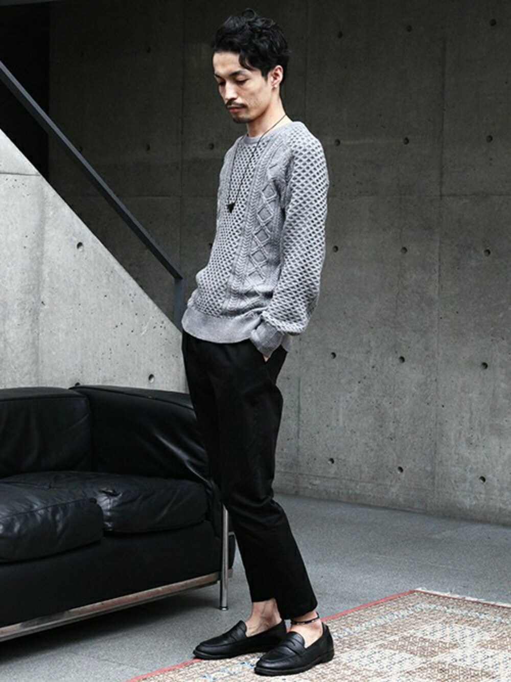 N.NAKAMURAのニット/セーター「EXTRA FINE カシミヤタッチアラン柄クルーネックニット」を使ったコーディネート