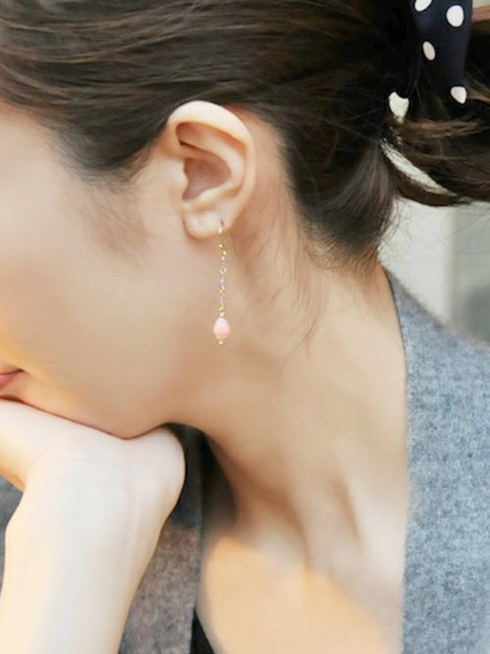 極小サイズのカラーストーンが愛らしいデザインのピアス。 春の装いから夏のカジュアルにまで幅広く楽しめそう。