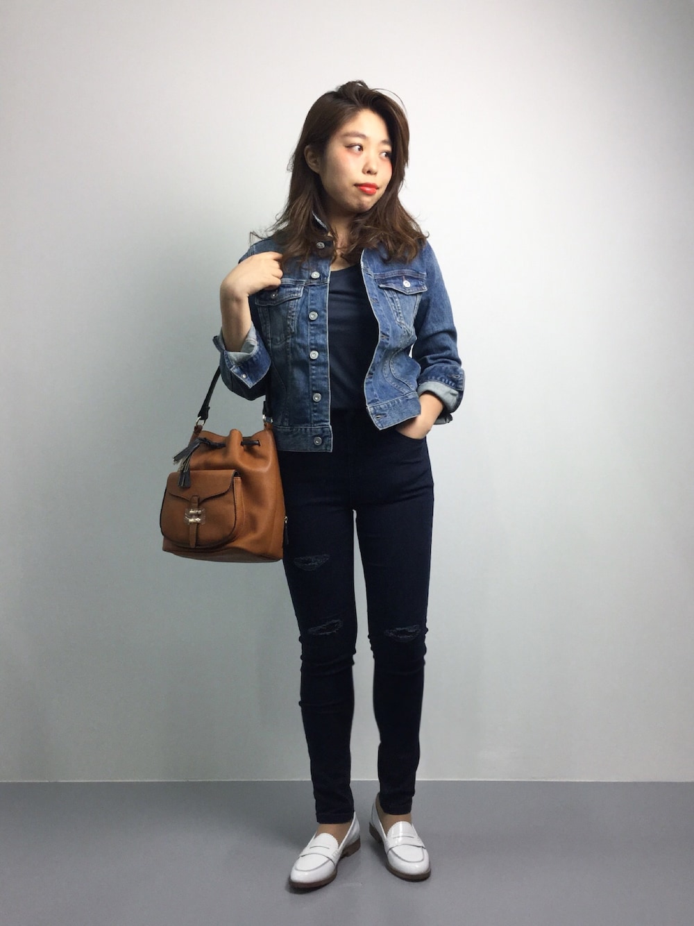シンプルなアイテムでまとめた、秋の大人カジュアルスタイルです。 秋冬に欠かせないデニムジャケットは、ストレッチがきいているので女性らしいコンパクトなサイズ感にも関わらず非常に着やすかったです。お値段も1万円台なので、手が届く値段なのも有難いですよね!