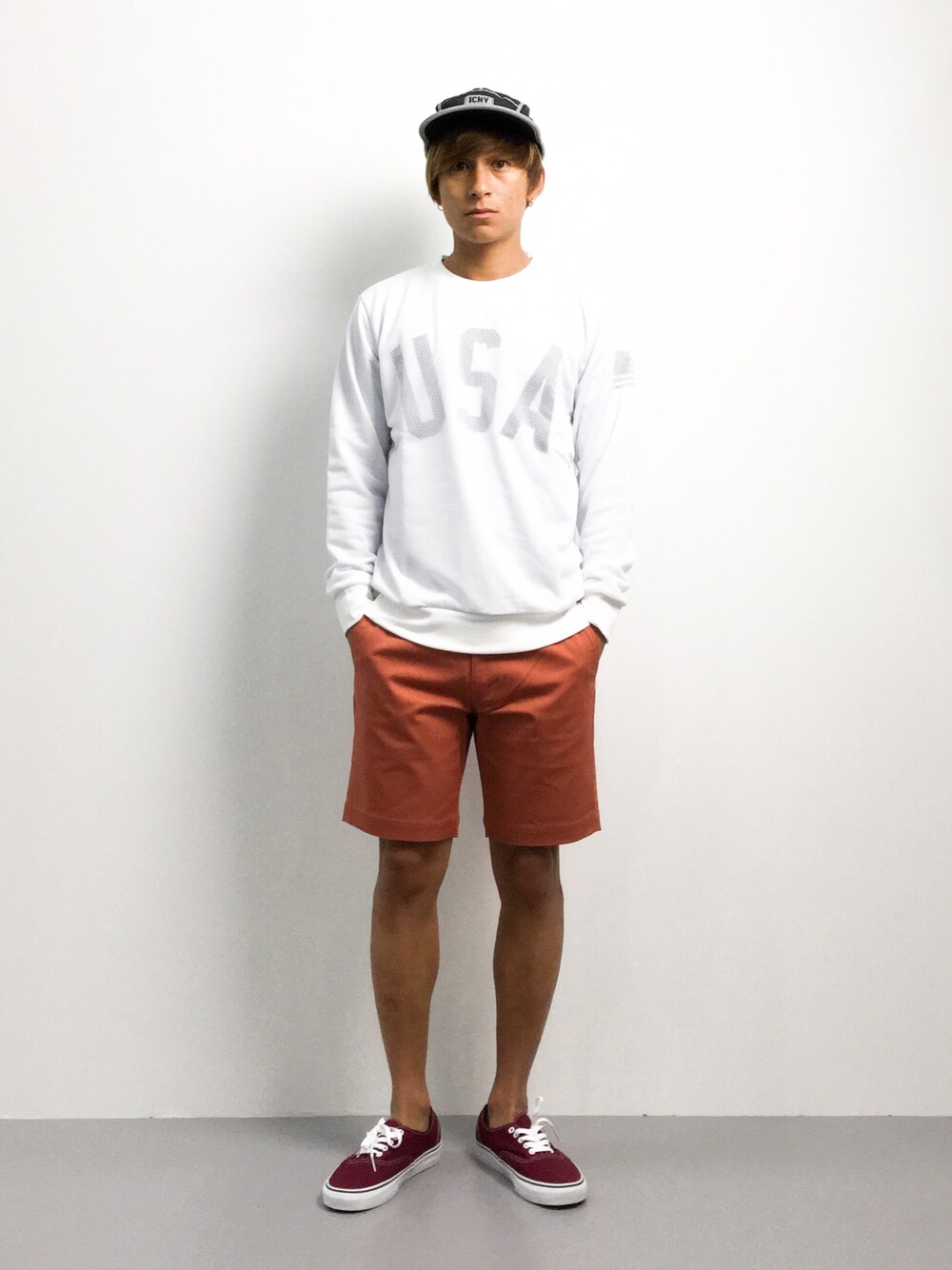 シンプルなコーデ。短パンに長袖がいい感じです。