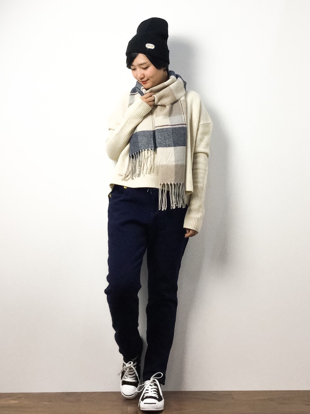 ゆえん(ZOZOTOWN)のニット/セーター「カシミヤウールビッグシルエットクループルオーバー#」を使ったコーディネート