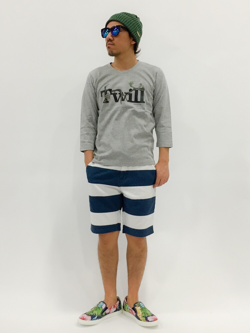 【トップス】 NOWARTT×SHIPS JET BLUEのカットソー。 胸にプリントされたグラフィックが魅力的な1枚。 生地もほどよく厚いので、安心してヘビロテできます。 Mサイズでジャストに着用。 【ボトムス】 ウエストがリブになっているボーダーショーツ。 生地も厚く、しっかりしているので重宝するボーダーショーツです。 ウエスト部分がリブになっているので、伸縮性があり着用しやすい1本。 Mサイズでやや大きめに着用。 【シューズ】 きれいな花柄のスリッポンは配色もかわいく、おすすめの1足。