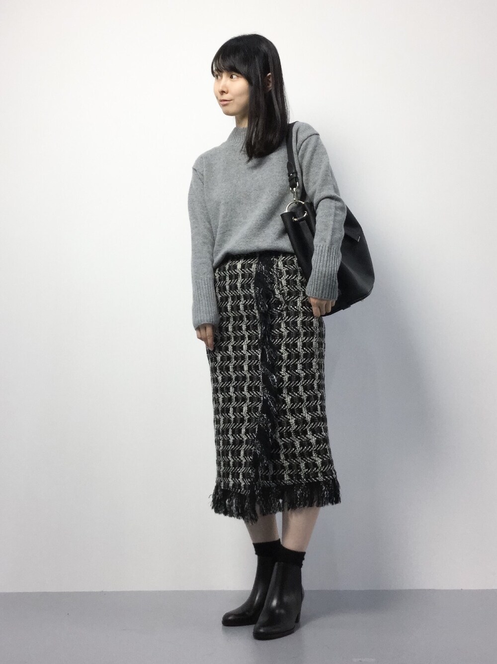 saya(ZOZOTOWN)のスカート「TWEED フリンジスカート◆」を使ったコーディネート
