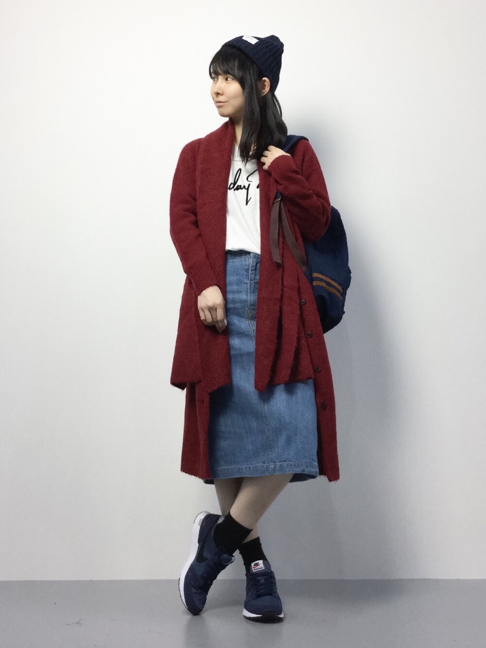 こちらのカーディガンは、ストールのように使えるデザインになっているので、首に巻くこともできますよ〜◎