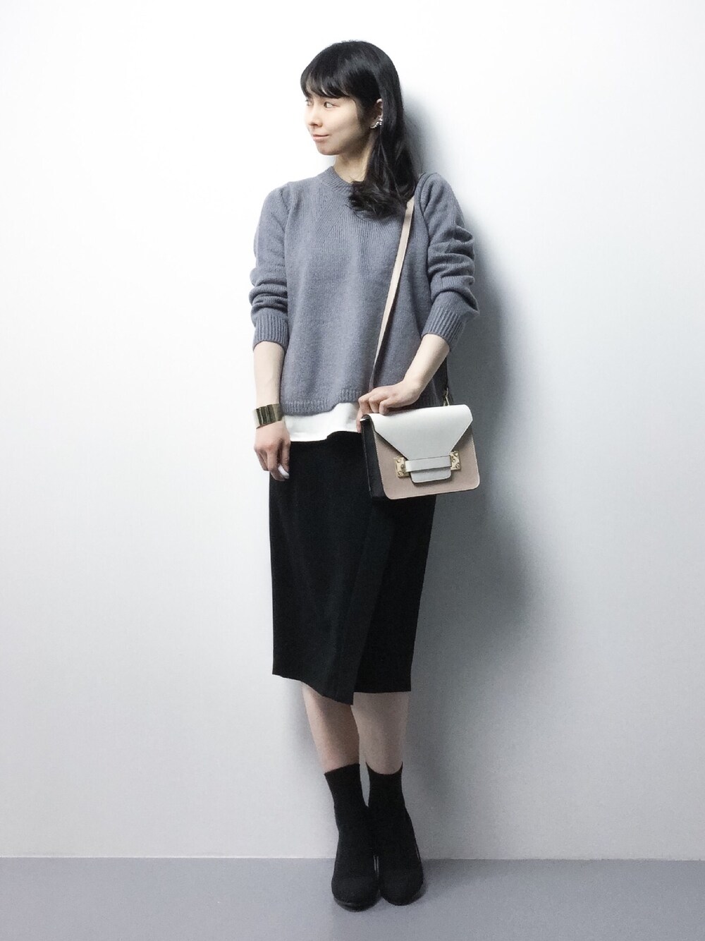 ニットとインナーがセットになったアイテムに、タイトスカートを合わせたコーデです*