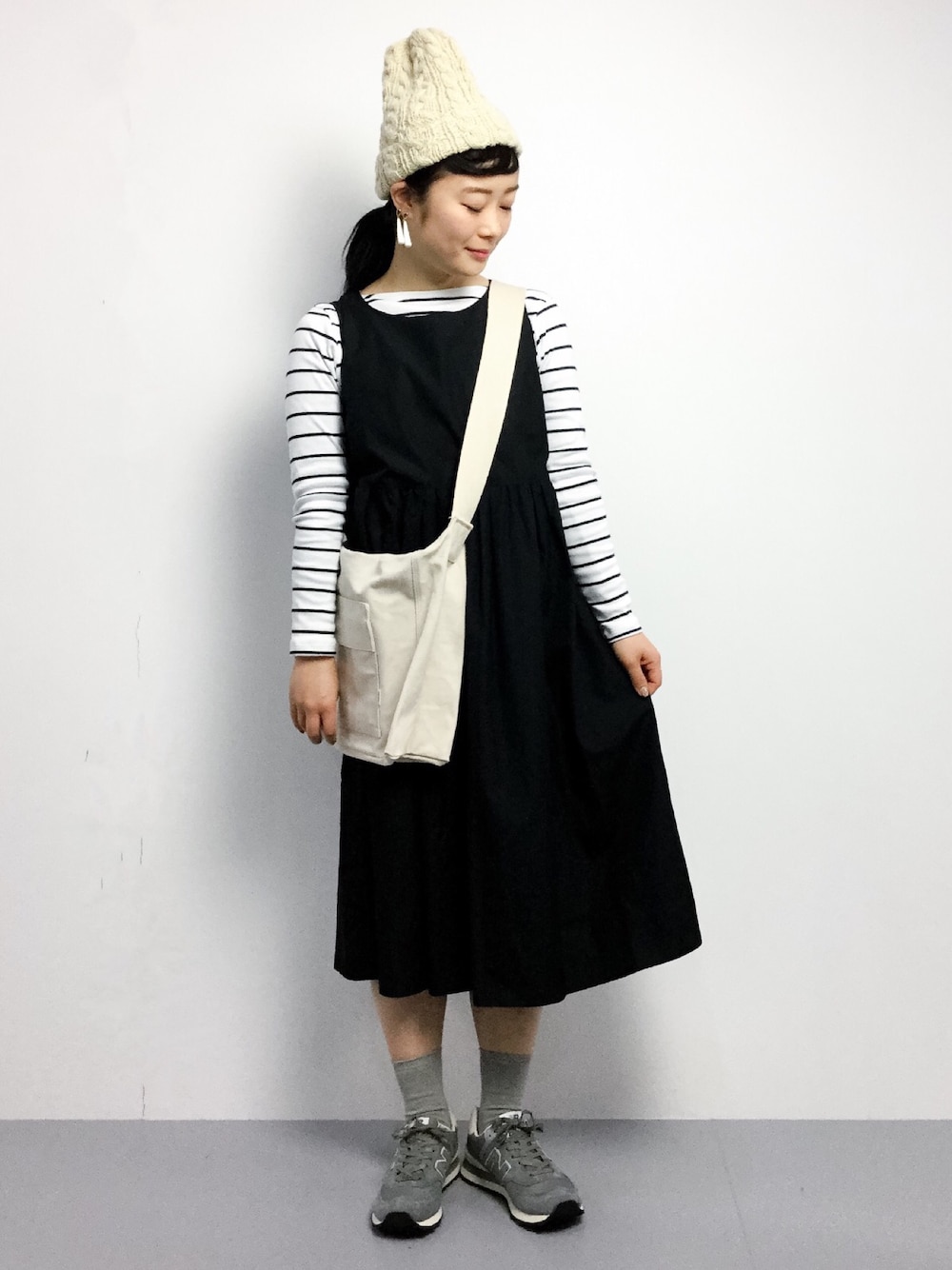 春先にむけての、軽めのスタイルです。 LE GLAZIKのワンピースはこの春夏の新作です! 薄手のハリのある生地で、これからの季節とても着やすいと思います。