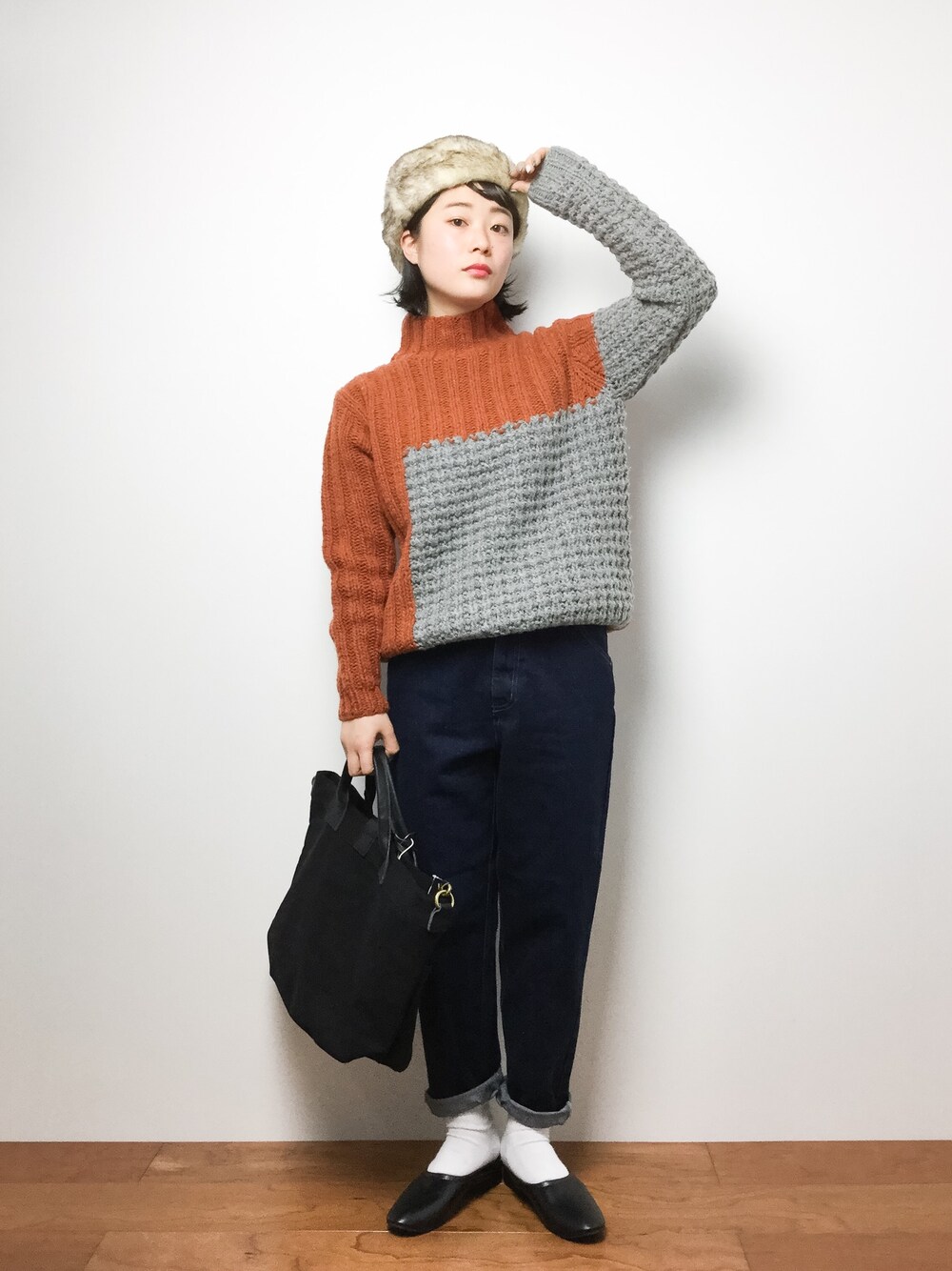 インパクトトップスに負けないように、ファー帽子でおめかしスタイル。 残念ながらすでにニットは在庫なしなんですが、合わせたデニムはネイビー・サックスブルー。グレーの3色展開で在庫もまだあります! スタンダードなデニムなので、季節に関係なく使えて便利です○ シューズは履き口がゴムになっているのでぴたっとしてシルエットもきれい! ただ、サイズが24cm~24.5cmとなっているのですが、24cmよりだと思うので足の大きい方はご注意を! こちらはセールで20%OFFになっていました^^