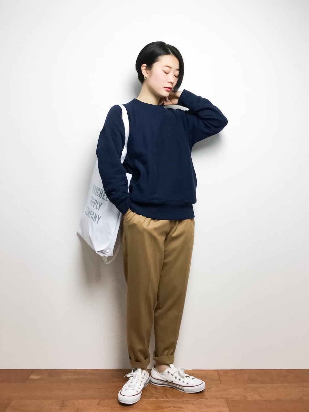 シンプルメンズライク。 nano・universeがチャンピオンに別注したスウェットは、だぼっとしたサイズ感がかわいかったです^^ 頼れるポケット付きなのも個人的にポイント高かったです! スタンダードなアイテムなので、秋~春まで長く着られるのもいいですよ。 パンツは、タックが入ったギャザーテーパード、細見えシルエットが魅力です。 一部のWEB店舗限定セール品みたいで、ZOZOでは60%オフとかなり破格になってました○! 気になる人は早めのチェックがオススメです。