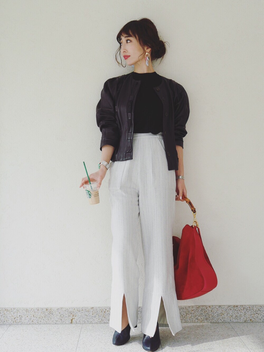 春のモノトーンも好きだな♡ そんな良い日にぎっくり腰なった😭笑