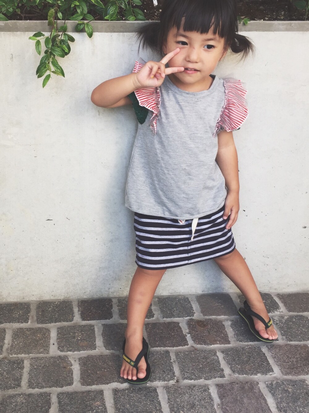 このスカート、セールで半額以下で購入。 ハワイアナスのビーサンは家族全員お揃い♡
