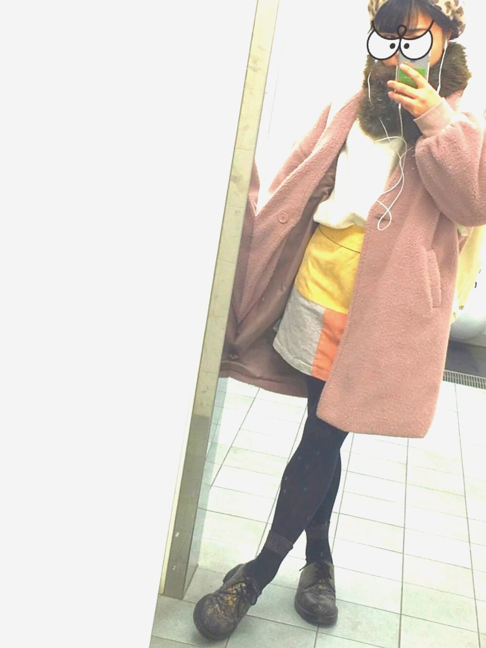 ざ・merry jennyって感じのコーデ。 実際はトップスだけやけど、、 ベレー帽は、実はヒョウ柄やなくて肉球柄! スカートはコーデュロイ、スウェードなどいろんな生地のパッチワークになってるの。 今日も1時間、結局30分のテストのためだけに往復2時間かけて学校行って来ました。バイトはまた違う格好でいこーっと。
