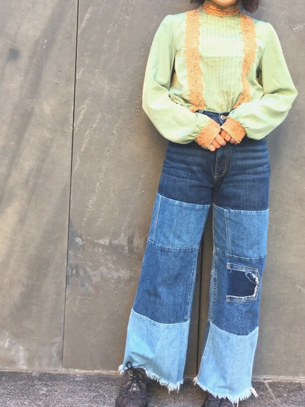ずきはのTシャツ/カットソー「PIN TUCK STAND LACE BL」を使ったコーディネート