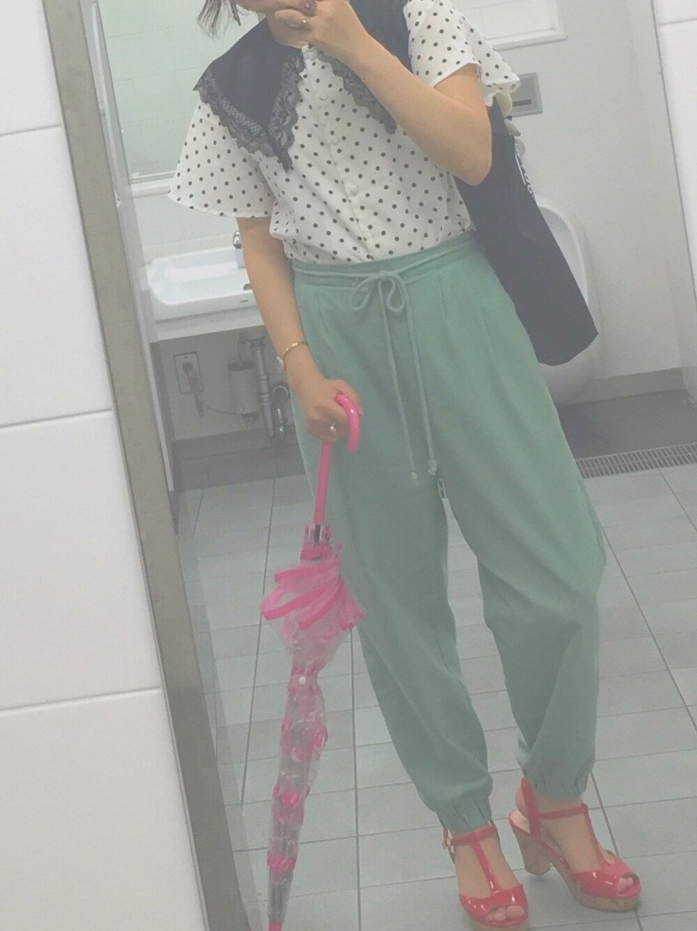 はぁ....... ガチのNEWSヲタなので心身ともに病んでます....... そんな日にでも学校はあるもんで。 できる限り気分を上げようとおNEWの古着ブラウスをメインに。襟が後ろまでセーラー型になってて可愛い。 モノトーンにならないように他は色味で仕上げました。 傘がちょっと浮いちゃったかな????
