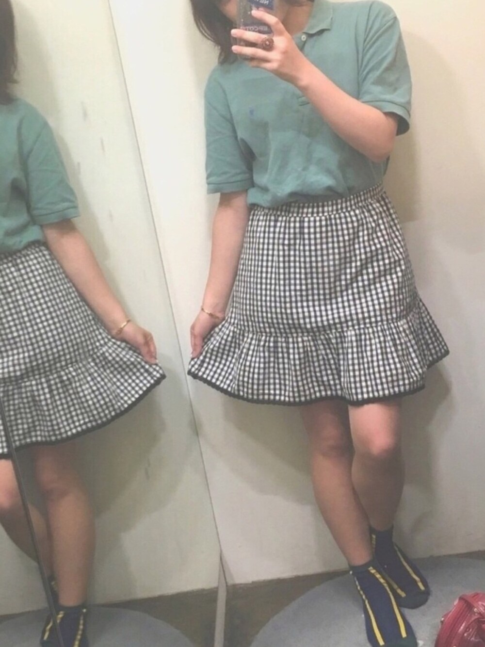 古着✖️古着コーデ。 上も下も合わせて¥1.500くらい!! 足元は写ってないけどマーチンで。 ちょっとちゃっちめのギンガムチェックスカートが欲しくて、安く手に入れられて満足。 今日は編み上げトップスとメッシュスカートをゲットしました。最近スポーツカジュアルがすごく好き。まだあんまり挑戦できてないけど。