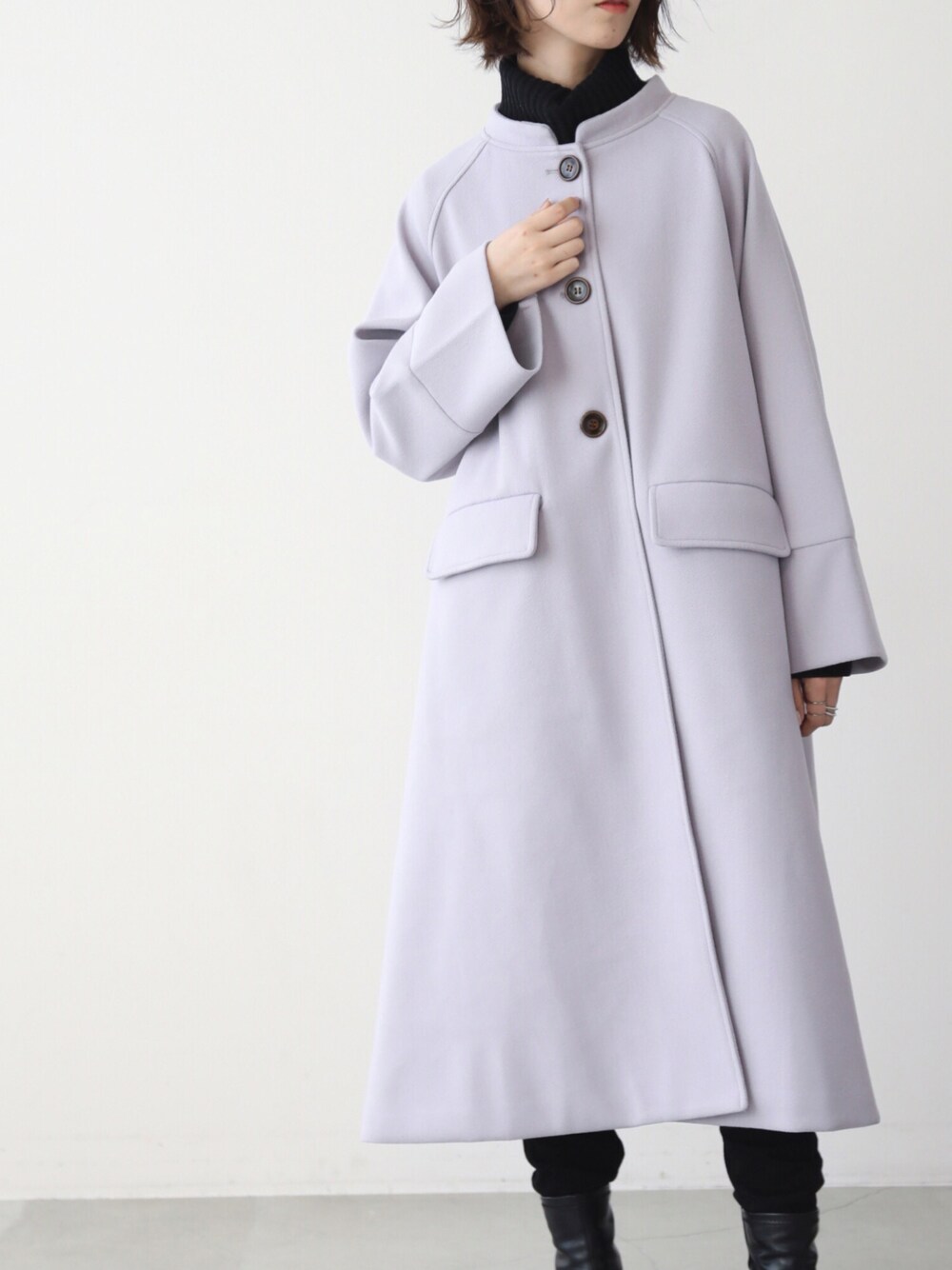 hazuのステンカラーコート「【WEB限定】2WAYフェイクウールコート」を使ったコーディネート