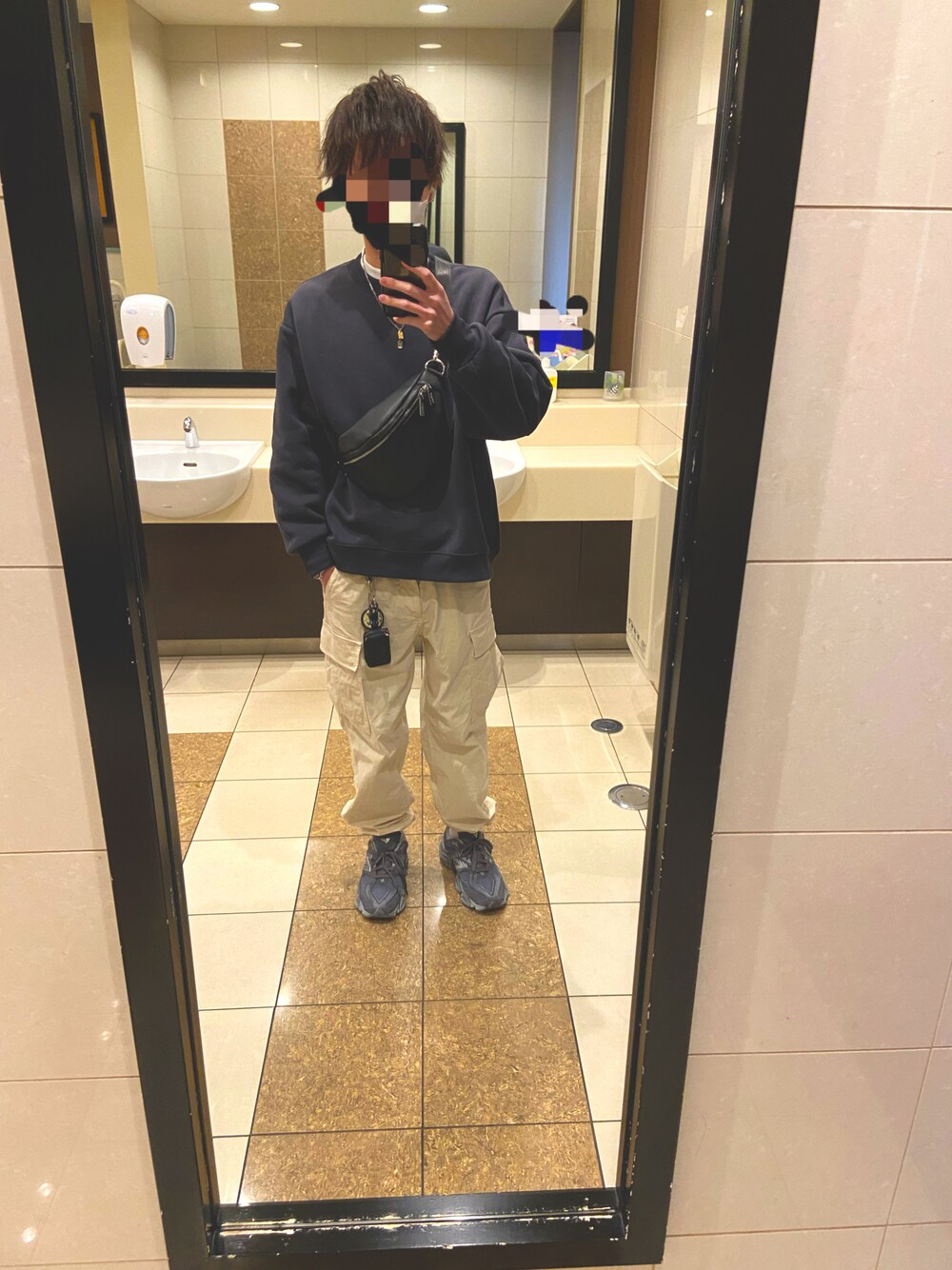 先日とあるYouTuberの方が紹介していたGUのレディースのスウェットがとても着やすく、頻繁着ています! Lサイズでゆったりした感じで着れて良いです。 よりオーバーサイズなら1つサイズ上げても良いと思います。 インナーはグリーンレーベルのモックネックのロンT、カーゴパンツはUNIQLO、足元はNew Balanceです。