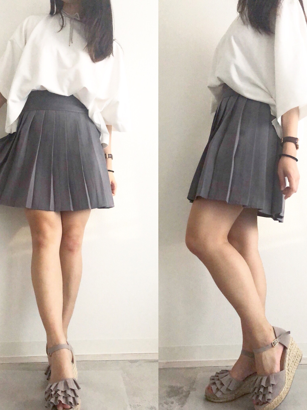 ・ ・ やっと欲しかったプリーツスカートゲットしました😭❤︎ ・ カチッとしすぎないようにトップスはゆるっとオーバーサイズに……💭 ・ ・